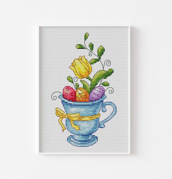 Easter Cross Stitch Pattern Bouquet In The Cup Cross Stitch Etsy